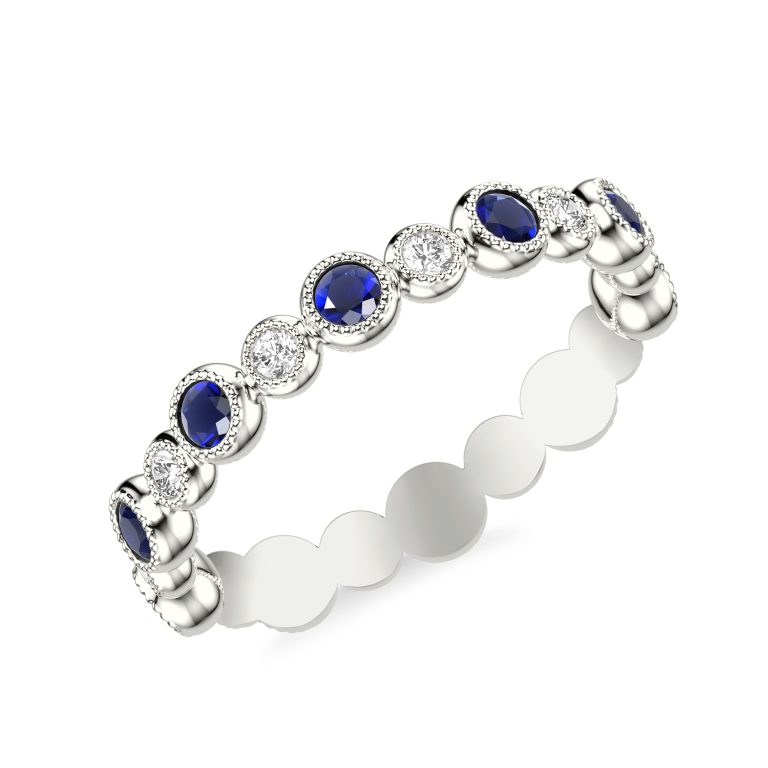 Diamond And Sapphire Bubble Eternity Wedding Band Platinum (Setting Price)