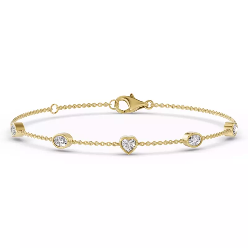 Pear, oval, and heart-shaped lab diamonds bezel-set along a fine chain give this design a gentle rhythm which is playful yet poetic.