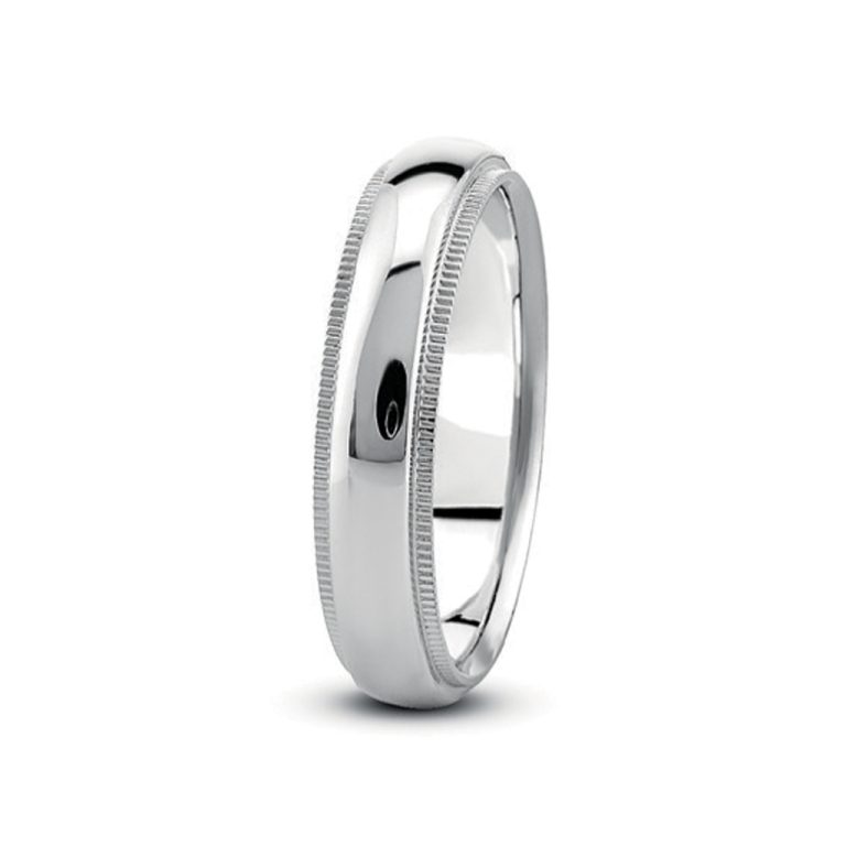 Dome Milgrain Comfort Fit (4mm)Wedding Band Platinum (Setting Price)