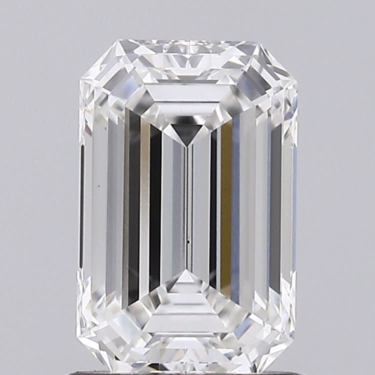 This 1.11 carat Emerald lab created diamond is certified by IGI as F color VS1 clarity and Excellent cut. It can be purchased as a loose diamond or set in a ring.