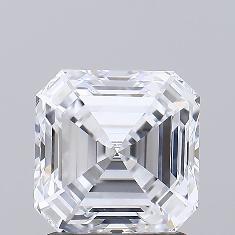 This 1.53 carat Asscher lab created diamond is certified by IGI as F color VS1 clarity and Excellent cut. It can be purchased as a loose diamond or set in a ring.