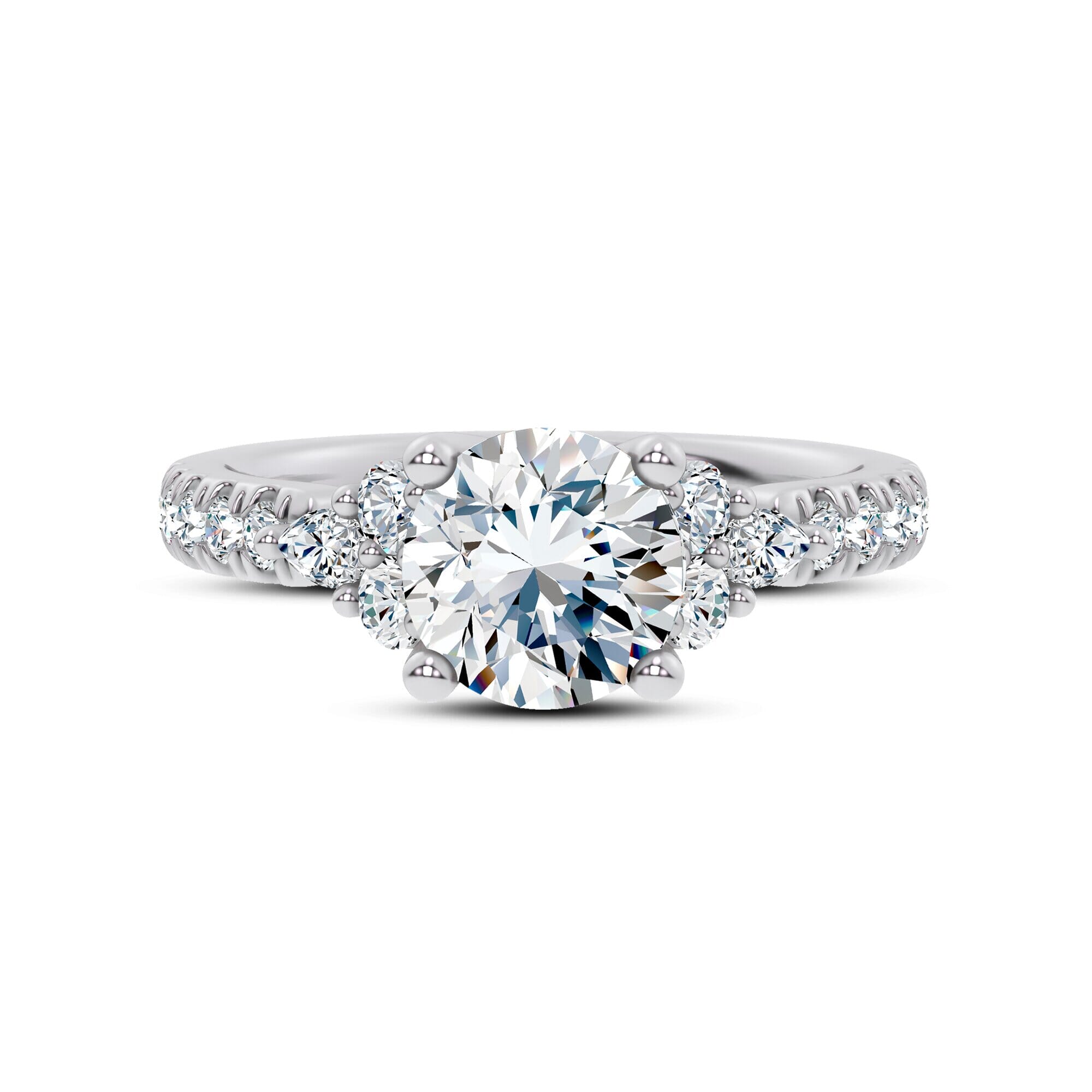 This is a Side-Stone Diamond Engagement Ring Setting. This 18K White Gold Engagement Ring is compatible with a center stone of any shape. Search and pick from thousands of certified diamonds to build your custom engagement ring and create the perfect ring for your budget.