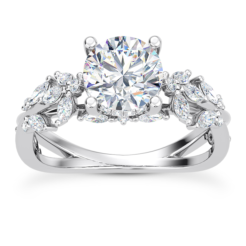 This is a Side-Stone Diamond Engagement Ring Setting. This 18K White Gold Engagement Ring is compatible with a center stone of any shape. Search and pick from thousands of certified diamonds to build your custom engagement ring and create the perfect ring for your budget.