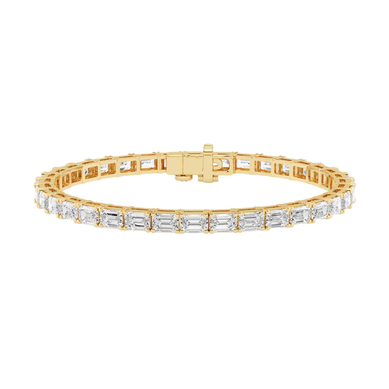 + Free ShippingThis is a jewelry Bracelet. This Bracelet has 14K Yellow Gold. This striking tennis bracelet showcases emerald-cut diamonds set in a distinctive east-west orientation.