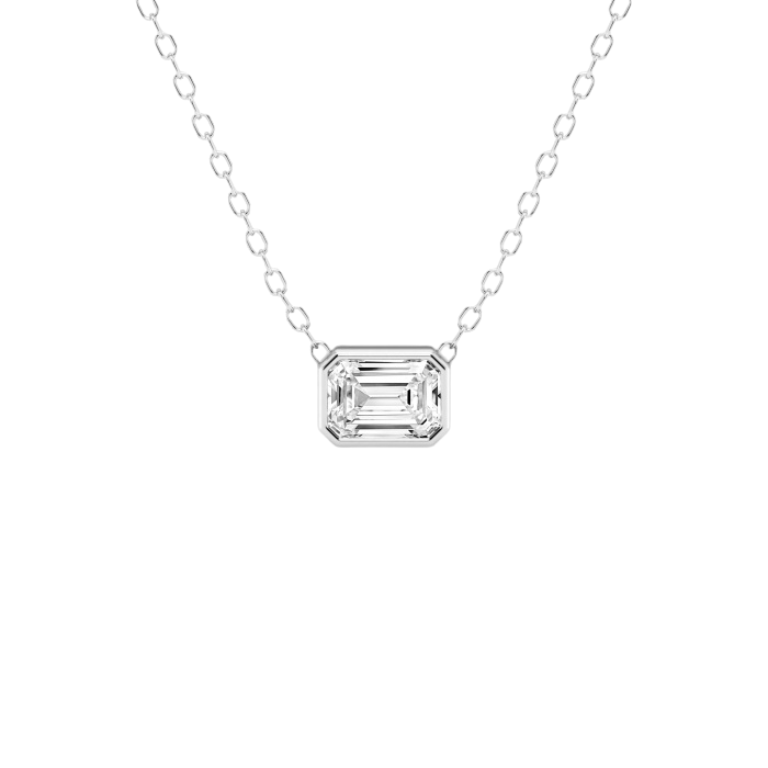 + Free ShippingThis is a jewelry Necklace. This Necklace has 14K White Gold. Experience a modern upgrade to the classic bezel pendant suspended by a delicate chain that gracefully passes through the design.