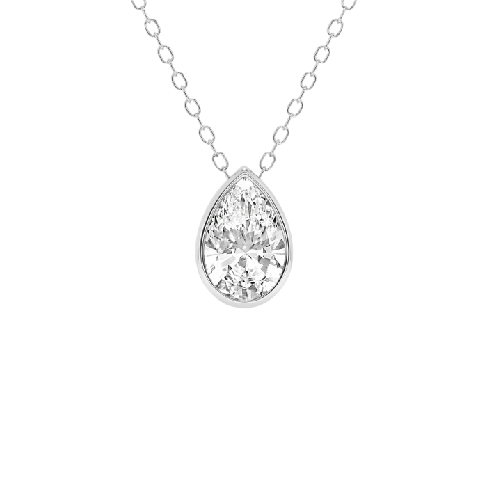 Modern Bezel Pear Lab Diamond Pendant (1 ct. tw.)-14K White Gold