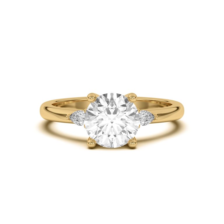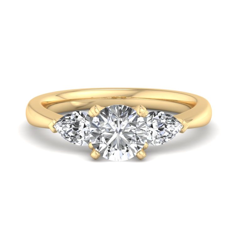 Madison Three-Stone Pear Engagement Ring – 14K Yellow Gold (Setting Price)